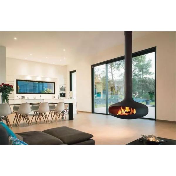 Cold Rolled Steel Ceiling Suspended Fireplace Wood Burning With Real Flame Images |